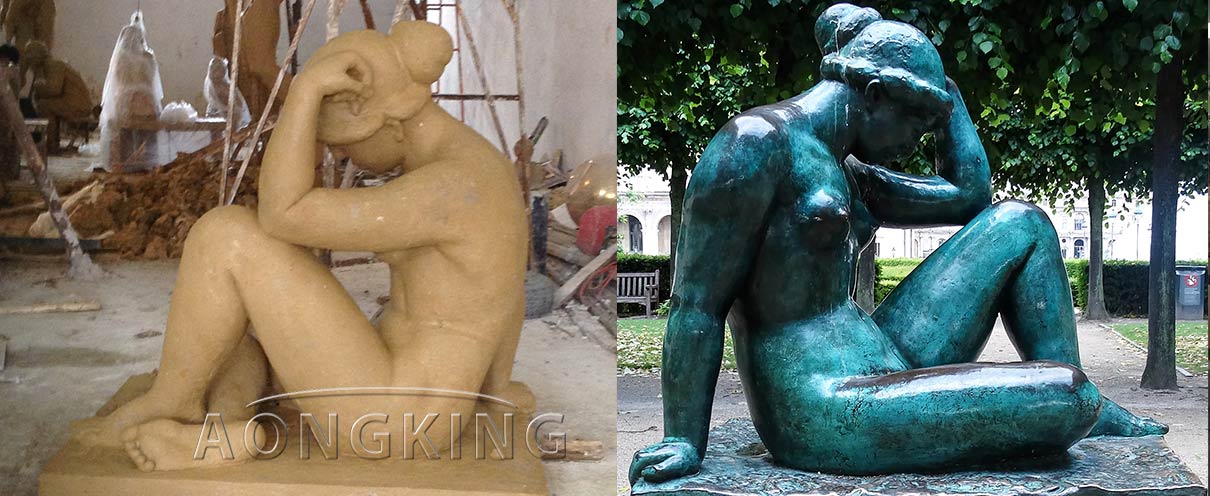坐着的女人雕塑 和罗丹一样著名的法国雕塑家,美术权威阿迪斯蒂德·马约尔这样评价罗丹:“如果罗丹的理想是把大理石和青铜变成肉,那么马约尔的理想就是把肉变成大理石和青铜。”他认为女性雕像应该保持一种源自古希腊罗马的净化,并将女性身体原有的曲线美比作自然的一部分。他用人体的自然节奏来象征一种建筑、一种自然或一种生态现象。虽然以古希腊为范本,但更注重对古代传统的简化和净化,从而出现了重卷重卷的现代倾向。